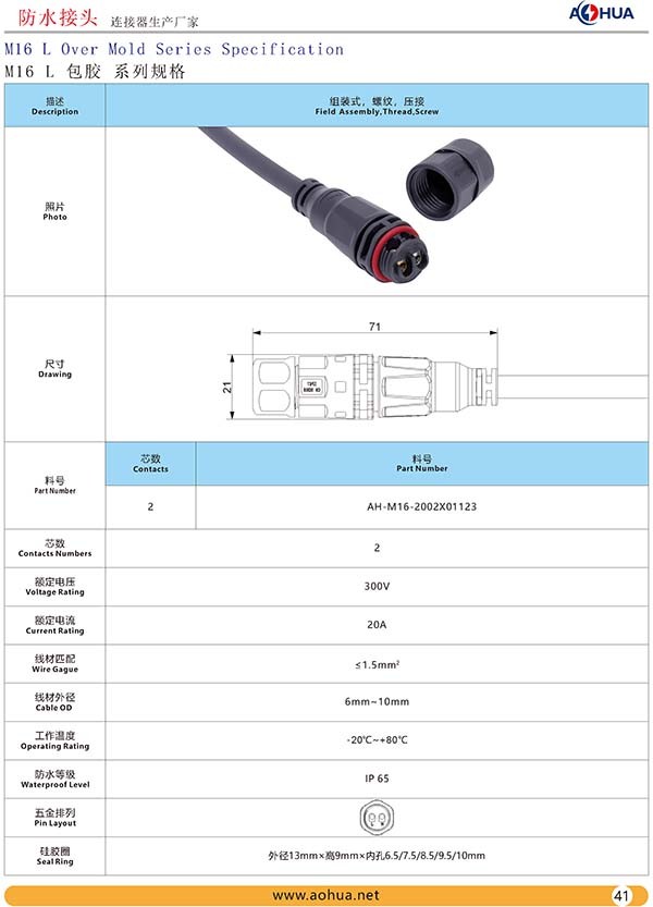 AHUA澳華公司專(zhuān)業(yè)生產(chǎn)LED防水插頭連接器、路燈模組分線盒、工控防水公母接頭、光伏航空插頭、新能源防水電源連接線、植物生長(zhǎng)燈連接線、畜牧養(yǎng)殖連接線、汽車(chē)線束。工廠自有模具制造、電線電纜押出、大型注塑、五金制造,雙生產(chǎn)基地,可來(lái)圖來(lái)樣個(gè)性化定制,國(guó)家高新技術(shù)規(guī)模企業(yè)!