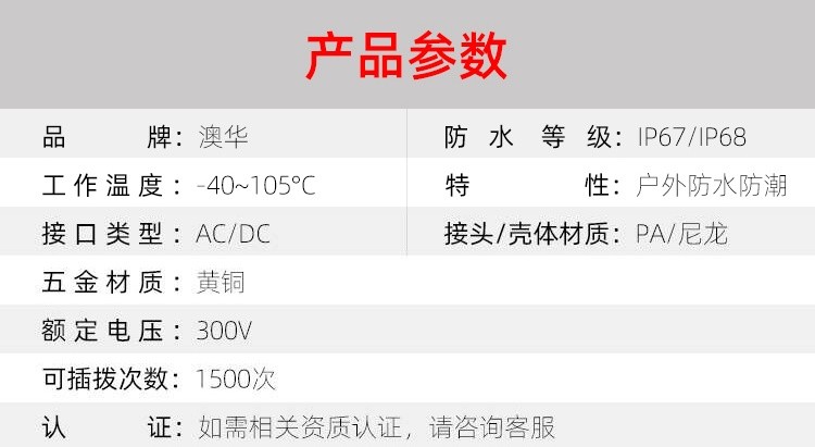 AHUA澳華公司專業(yè)生產(chǎn)LED防水插頭連接器、路燈模組分線盒、工控防水公母接頭、光伏航空插頭、新能源防水電源連接線、植物生長燈連接線、畜牧養(yǎng)殖連接線、汽車線束。工廠自有模具制造、電線電纜押出、大型注塑、五金制造,雙生產(chǎn)基地,可來圖來樣個性化定制,國家高新技術(shù)規(guī)模企業(yè)!