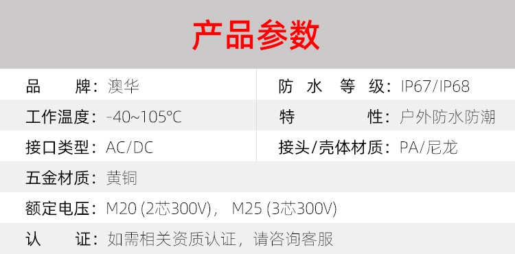 AHUA澳華公司專業(yè)生產(chǎn)LED防水插頭連接器、路燈模組分線盒、工控防水公母接頭、光伏航空插頭、新能源防水電源連接線、植物生長燈連接線、畜牧養(yǎng)殖連接線、汽車線束。工廠自有模具制造、電線電纜押出、大型注塑、五金制造,雙生產(chǎn)基地,可來圖來樣個性化定制,國家高新技術(shù)規(guī)模企業(yè)!
