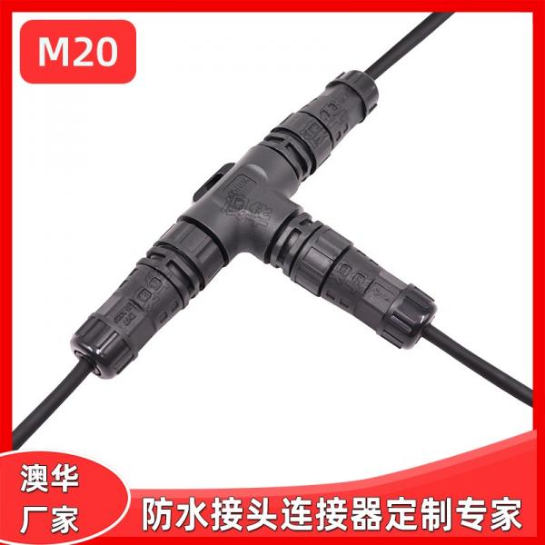 AHUA澳華軌道交通設(shè)備M20三通防水插頭戶外防水連接器2芯防水接頭