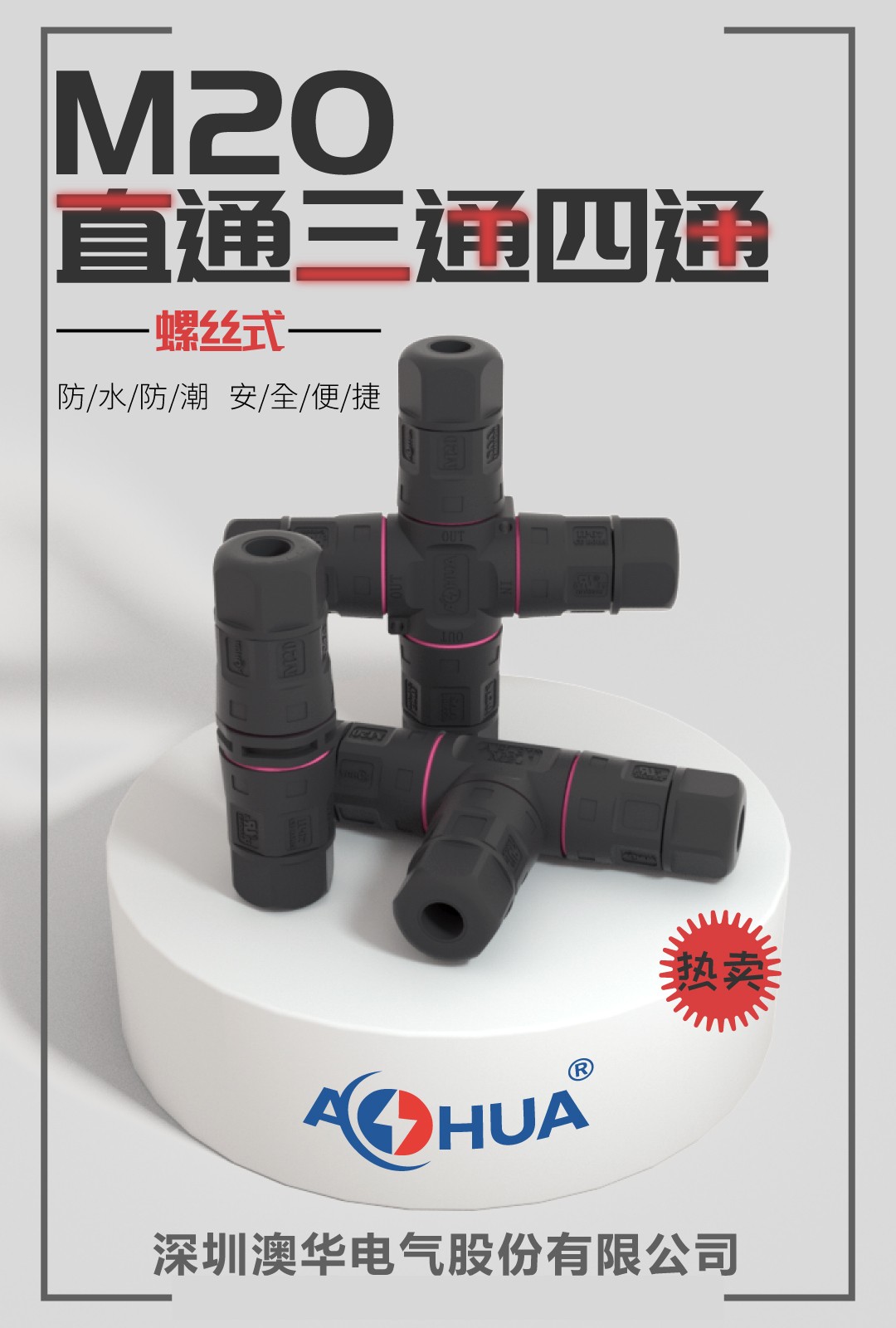 AHUA澳華公司專業(yè)生產(chǎn)LED防水插頭連接器、路燈模組分線盒、工控防水公母接頭、光伏航空插頭、新能源防水電源連接線、植物生長燈連接線、畜牧養(yǎng)殖連接線、汽車線束。工廠自有模具制造、電線電纜押出、大型注塑、五金制造,雙生產(chǎn)基地,可來圖來樣個性化定制,國家高新技術(shù)規(guī)模企業(yè)!