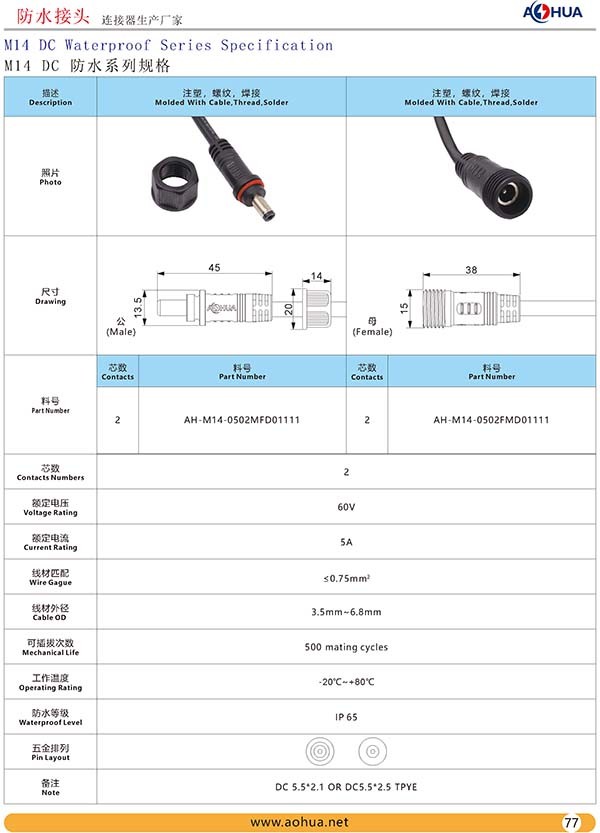 AHUA澳華公司專業(yè)生產(chǎn)LED防水插頭連接器、路燈模組分線盒、工控防水公母接頭、光伏航空插頭、新能源防水電源連接線、植物生長(zhǎng)燈連接線、畜牧養(yǎng)殖連接線、汽車(chē)線束。工廠自有模具制造、電線電纜押出、大型注塑、五金制造,雙生產(chǎn)基地,可來(lái)圖來(lái)樣個(gè)性化定制,國(guó)家高新技術(shù)規(guī)模企業(yè)!