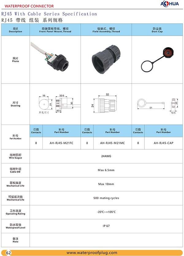 AHUA澳華公司專業(yè)生產(chǎn)LED防水插頭連接器、路燈模組分線盒、工控防水公母接頭、光伏航空插頭、新能源防水電源連接線、植物生長燈連接線、畜牧養(yǎng)殖連接線、汽車線束。工廠自有模具制造、電線電纜押出、大型注塑、五金制造,雙生產(chǎn)基地,可來圖來樣個性化定制,國家高新技術(shù)規(guī)模企業(yè)!