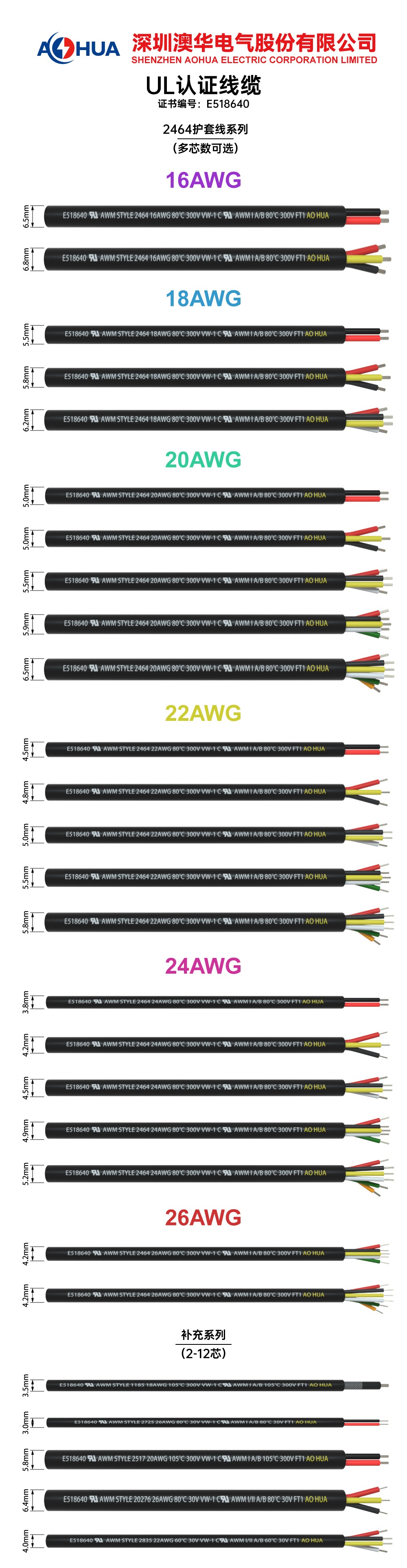 AHUA澳華ULE518640 2464護(hù)套線 3*16AWG 18#通訊線