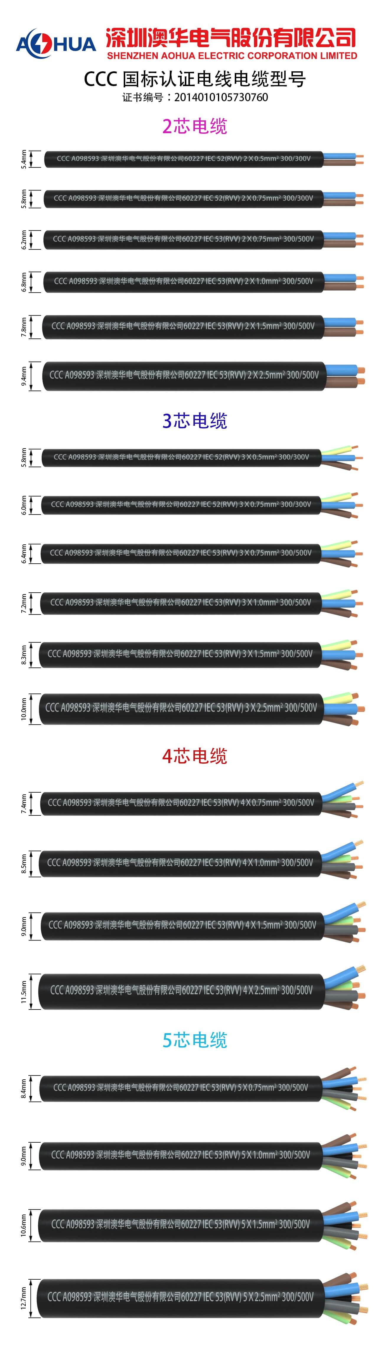 AHUA澳華60227IEC53RVV0.5 3*0.75 1.0 300/500 3C護(hù)套線