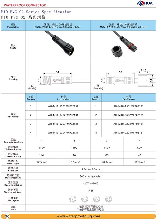 AHUA澳華公司專業(yè)生產(chǎn)LED防水插頭連接器、路燈模組分線盒、工控防水公母接頭、光伏航空插頭、新能源防水電源連接線、植物生長燈連接線、畜牧養(yǎng)殖連接線、汽車線束。工廠自有模具制造、電線電纜押出、大型注塑、五金制造,雙生產(chǎn)基地,可來圖來樣個性化定制,國家高新技術(shù)規(guī)模企業(yè)!
