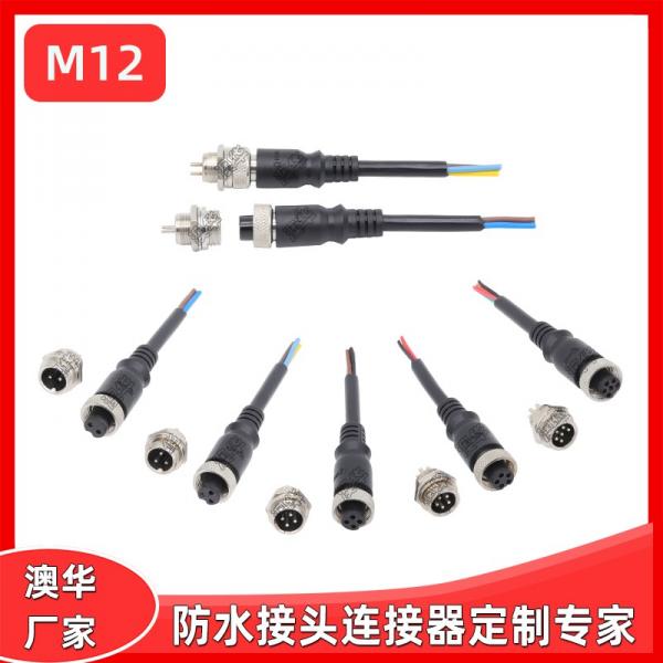 AHUA澳華電源信號(hào)5芯航空插頭M12照明器械防水連接器控制器防水線