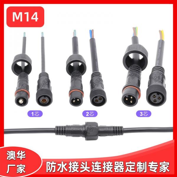 AHUA澳華直銷M14電線連接器 2芯防水插頭線 太陽能光伏防水接頭線