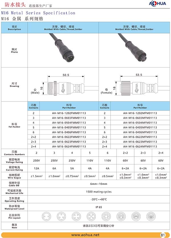 AHUA澳華公司專業(yè)生產(chǎn)LED防水插頭連接器、路燈模組分線盒、工控防水公母接頭、光伏航空插頭、新能源防水電源連接線、植物生長燈連接線、畜牧養(yǎng)殖連接線、汽車線束。工廠自有模具制造、電線電纜押出、大型注塑、五金制造,雙生產(chǎn)基地,可來圖來樣個(gè)性化定制,國家高新技術(shù)規(guī)模企業(yè)!