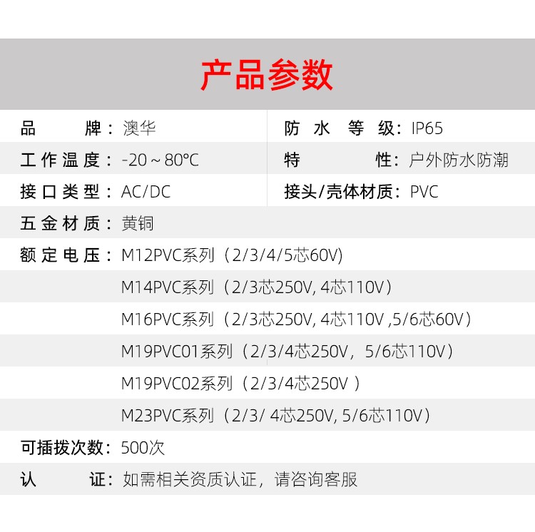 AHUA澳華面板M16PVC防水接頭線養(yǎng)殖設(shè)備線纜防水插頭