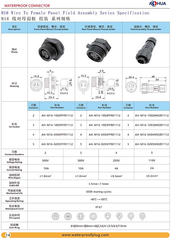 AHUA澳華公司專業(yè)生產(chǎn)LED防水插頭連接器、路燈模組分線盒、工控防水公母接頭、光伏航空插頭、新能源防水電源連接線、植物生長燈連接線、畜牧養(yǎng)殖連接線、汽車線束。工廠自有模具制造、電線電纜押出、大型注塑、五金制造,雙生產(chǎn)基地,可來圖來樣個性化定制,國家高新技術(shù)規(guī)模企業(yè)!