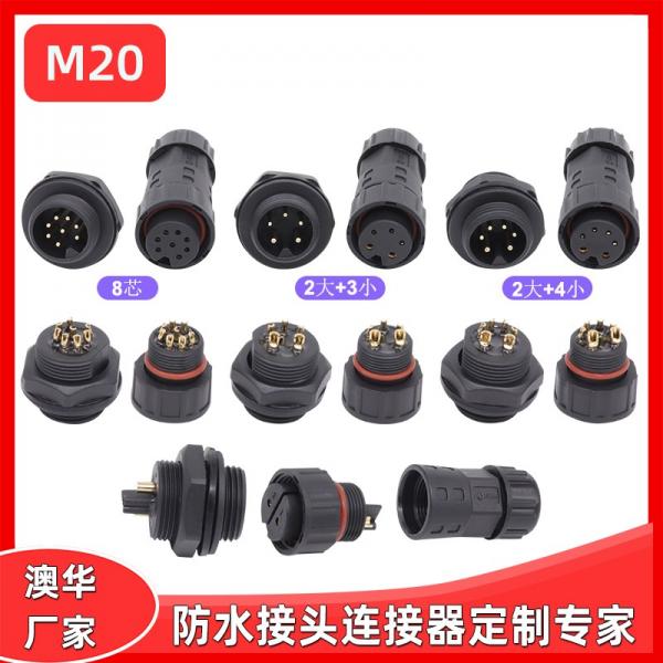 AHUA澳華M20尼龍后裝公面板LED帶護(hù)蓋 防水插頭組裝面板接頭IP67