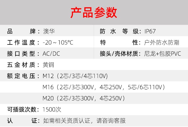 AHUA澳華公司專業(yè)生產(chǎn)LED防水插頭連接器、路燈模組分線盒、工控防水公母接頭、光伏航空插頭、新能源防水電源連接線、植物生長(zhǎng)燈連接線、畜牧養(yǎng)殖連接線、汽車線束。工廠自有模具制造、電線電纜押出、大型注塑、五金制造,雙生產(chǎn)基地,可來圖來樣個(gè)性化定制,國(guó)家高新技術(shù)規(guī)模企業(yè)!