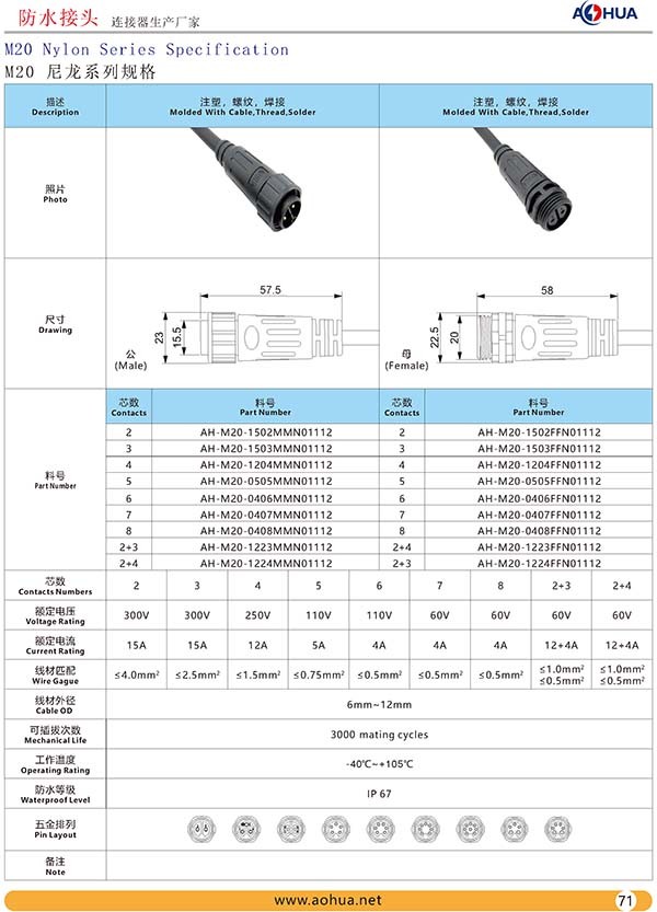 AHUA澳華公司專業(yè)生產(chǎn)LED防水插頭連接器、路燈模組分線盒、工控防水公母接頭、光伏航空插頭、新能源防水電源連接線、植物生長燈連接線、畜牧養(yǎng)殖連接線、汽車線束。工廠自有模具制造、電線電纜押出、大型注塑、五金制造,雙生產(chǎn)基地,可來圖來樣個性化定制,國家高新技術(shù)規(guī)模企業(yè)!